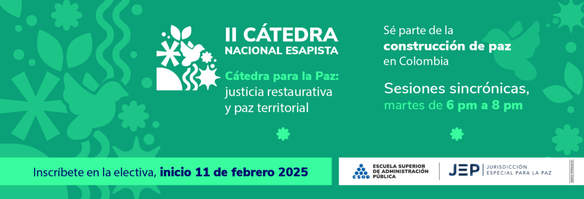 26 Ene 2025 Inicio » Inicio » Noticias » ¡Atención! estudiantes esapistas, ¡esta información es para ti! ¡Atención! estudiantes esapistas, ¡esta información es para ti! por Christian Gomez | Publicado en: Noticias | 0 ¿Ya conoces la electiva que tenemos para ti? Este 2025 inscribe la electiva II cátedra esapista y se parte de la construcción de paz en Colombia a través de la justicia restaurativa.