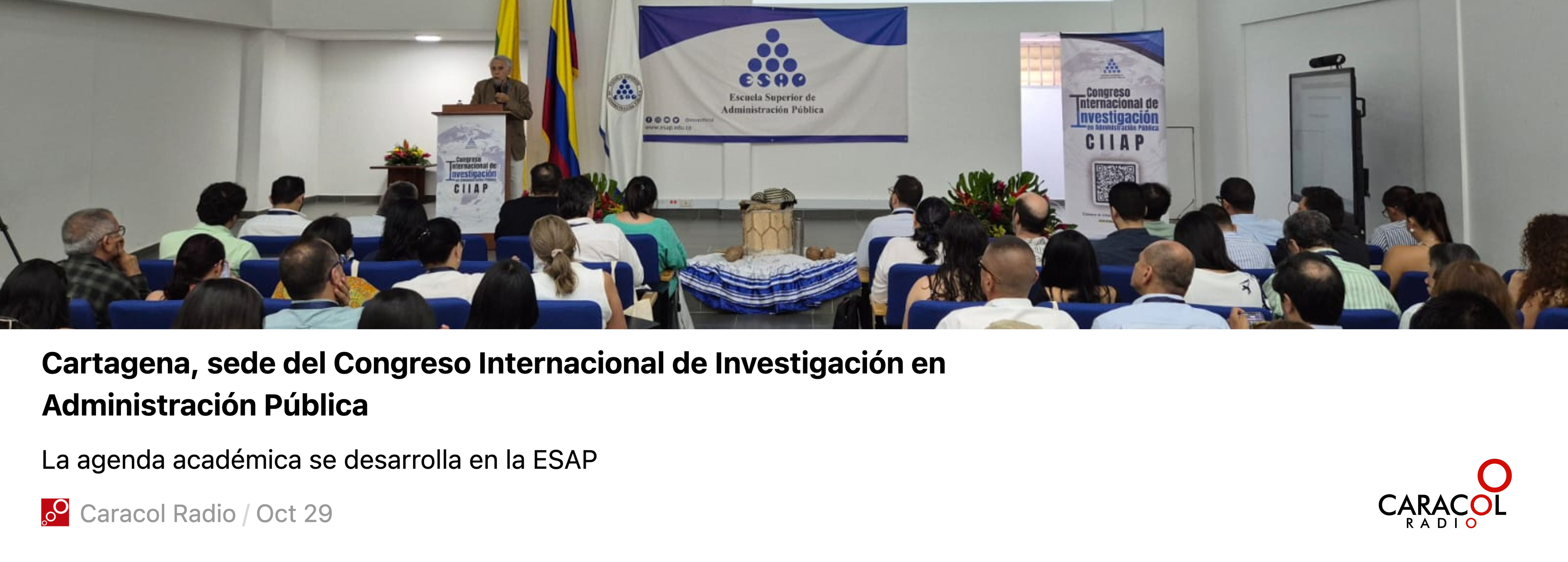 La Escuela Superior de Administración Pública (ESAP) realiza en Cartagena el Congreso Internacional de Investigación en Administración Pública (CIIAP), un espacio académico que reúne durante dos días a investigadores, docentes, estudiantes y expertos de varios países latinoamericanos para analizar los retos actuales de la gestión pública.