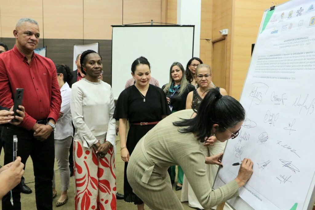 Popayán, 2 de diciembre de 2024 (Comunicaciones ESAP). El departamento del Cauca reafirma su compromiso con la reducción de brechas laborales mediante la firma del acuerdo de gobernanza para la promoción del empleo decente y formal “Cauca emplea seguro”. Esta iniciativa busca mejorar las condiciones laborales y abrir oportunidades para todas y todos en el territorio.