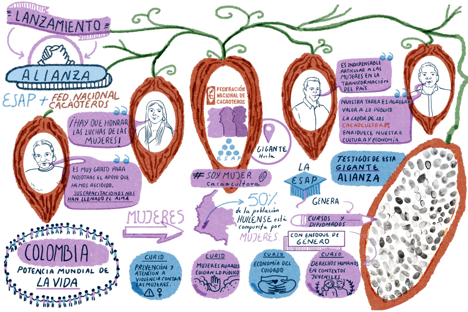 Celebramos con entusiasmo el reciente convenio firmado entre la Federación Nacional de Cacaocultores y la Escuela Superior de Administración Pública (ESAP). Este acuerdo tiene como objetivo capacitar a mujeres y en los departamentos de Huila, Tolima y jóvenes en Meta, en temáticas de economía del cuidado, derechos humanos en contextos juveniles, entre otros. A través de esta colaboración, se busca empoderar a las mujeres en estos territorios y jóvenes, brindándoles herramientas que contribuyan a su crecimiento y al progreso de sus comunidades.