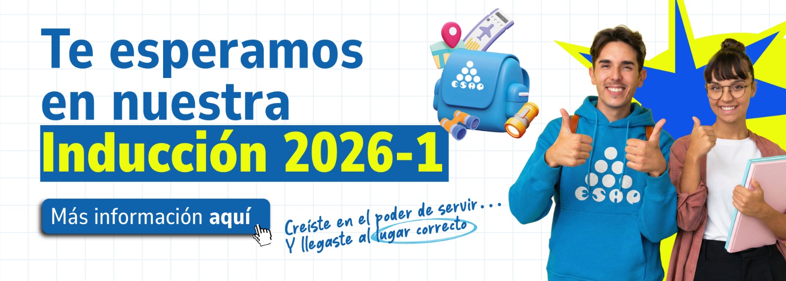 La ESAP invita a los estudiantes nuevos a participar activamente en estas jornadas, las cuales constituyen un espacio fundamental para conocer la estructura académica de la Institución, los servicios de acompañamiento integral y los lineamientos que orientarán su proceso formativo durante este periodo inicial de 2026.