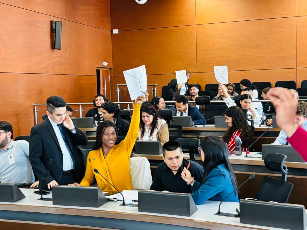 Durante las sesiones, los participantes trabajaron en propuestas concretas y discutieron temas fundamentales para el desarrollo local. Además, la actividad incluyó la sesión presencial en el Concejo de Bogotá, donde los participantes asumieron el rol de concejales, enfrentando retos reales de gestión y gobernanza.