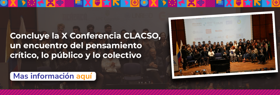 Después de cuatro días de discusión, reflexión, intercambio y conexión, finalizó en Bogotá la X Conferencia Latinoamericana y Caribeña de Ciencias Sociales, organizada por el Consejo Latinoamericano de Ciencias Sociales (CLACSO). Más de 28.000 personas asistieron a las tres sedes … Sigue leyendo Concluye la X Conferencia CLACSO, un encuentro del pensamiento crítico, lo público y lo colectivo