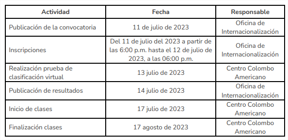 Institución oferente: Centro Colombo Americano de Bogotá