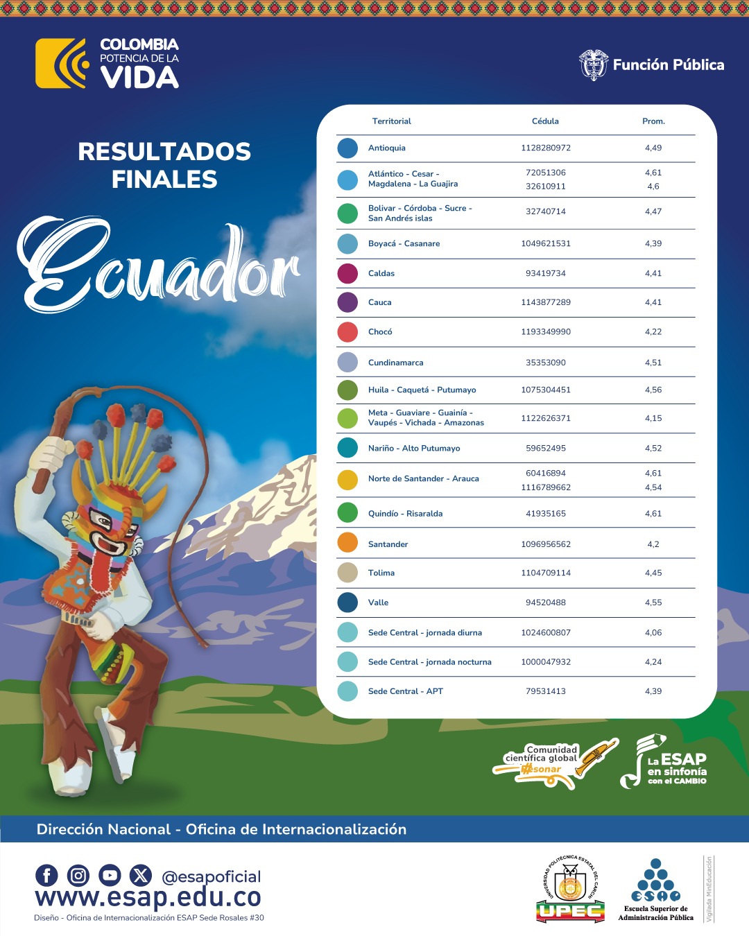 Para recibir más información puede escribir al correo: internacional@esap.edu.co