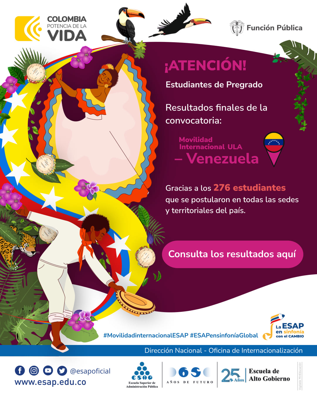 La Oficina de Internacionalización de la Escuela Superior de Administración Pública -ESAP- invita a estudiantes de los programas de pregrado a postularse para ser beneficiario de una movilidad académica internacional, en el marco del Memorando de Entendimiento suscrito entre la ESAP y la Universidad de Los Andes-ULA, Venezuela.