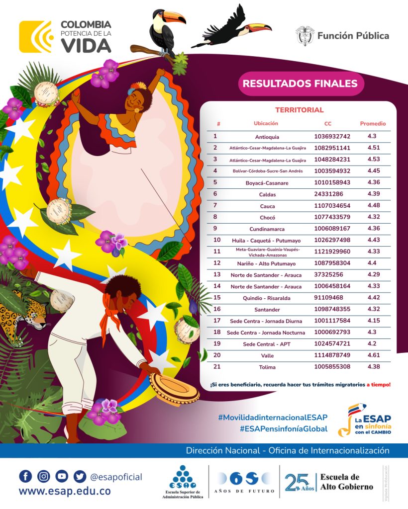 Para recibir más información puede escribir al correo: internacional@esap.edu.co