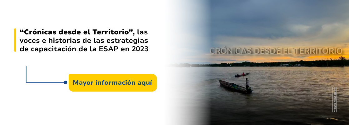 Bogotá, noviembre de 2023. COMUNICACIONES ESAP. Para conocer algunos de los resultados de las estrategias de capacitación de la ESAP durante este 2023, la Escuela Superior de Administración Pública ESAP presenta “Crónicas desde el Territorio”, una serie gráfica y audiovisual con las voces e historias de las y los protagonistas de los procesos de capacitación en todo el país.