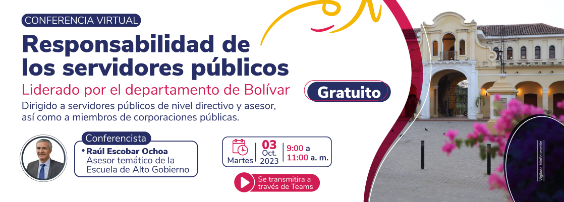 Esta actividad, liderada por el departamento de Bolívar y dirigida a los servidores públicos de nivel directivo y asesor, así como a miembros de corporaciones públicas del departamento, pretende ahondar en las siguientes temáticas: a) Fundamentos de la responsabilidad de los servidores públicos como ordenadores del gasto, asesores, supervisores, interventores y demás tomadores de decisiones; b) La ética en la gestión pública; c) La corrupción como fenómeno público y privado; c) El valor público como resultante de la gestión y su relación con los fines del Estado; d) Causales de responsabilidad penal, disciplinaria, fiscal, civil, política de los servidores públicos y de los contratistas; y e) Identificación de riesgos y medidas de prevención.