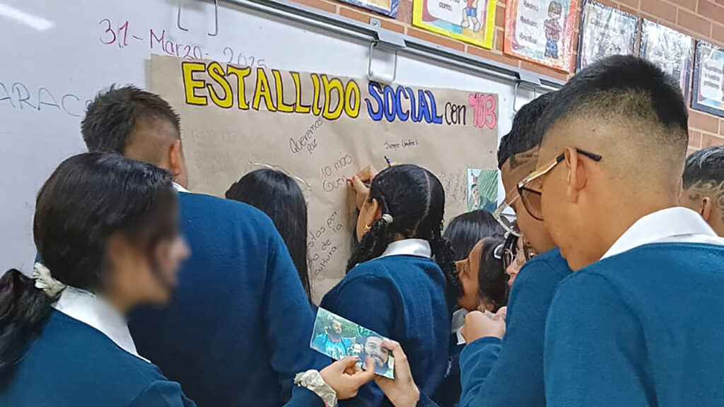 Por eso, nos propusimos desarrollar espacios para la reflexión y la memoria histórica en cuatro instituciones educativas del sur de Bogotá —José María Vargas Vila, El Tesoro de la Cumbre, Almirante Padilla y Nuevo Chile— con estudiantes de noveno y décimo grado (35 por curso en promedio).