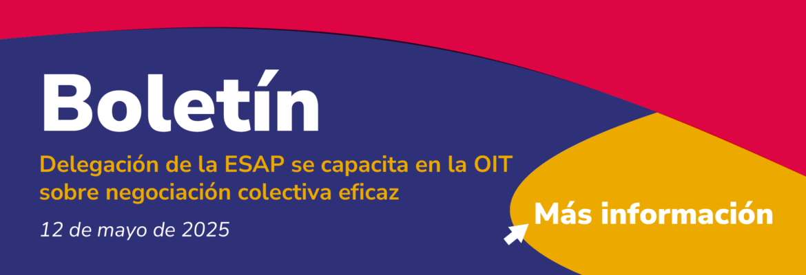 Esta opción de capacitación, impartida desde la entidad de las Naciones Unidas «consagrada a la promoción de la justicia social, de los derechos humanos y laborales reconocidos internacionalmente», proviene del trabajo adelantado por la Oficina de Internacionalización de la ESAP y hace parte del memorando de entendimiento suscrito entre la Escuela y la OIT, el 1.o de marzo de 2024, que desde entonces anticipaba un primer y significativo paso hacia la satisfacción del ítem 65 del Acuerdo Colectivo entre la ESAP y sus organizaciones sindicales, del 18 de junio del 2024, según el cual «La ESAP gestionará con organizaciones e instituciones educativas, públicas o privadas, nacionales e internacionales, […] alternativas de formación sindical […] que permitan el fortalecimiento y la cualificación de los sindicatos […] a partir del primer semestre de 2025».