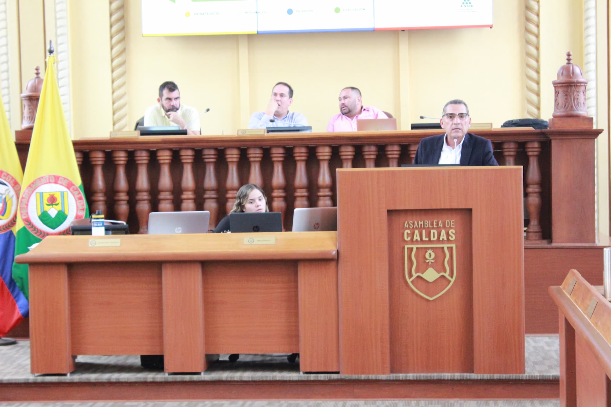 Castaño les presentó a los diputados la cobertura que se tiene en la actualidad en Caldas así como el alcance en cuanto a capacitación, asistencia técnica, becas y la oferta académica que se tiene y se tendrá para el segundo semestre del 2023.