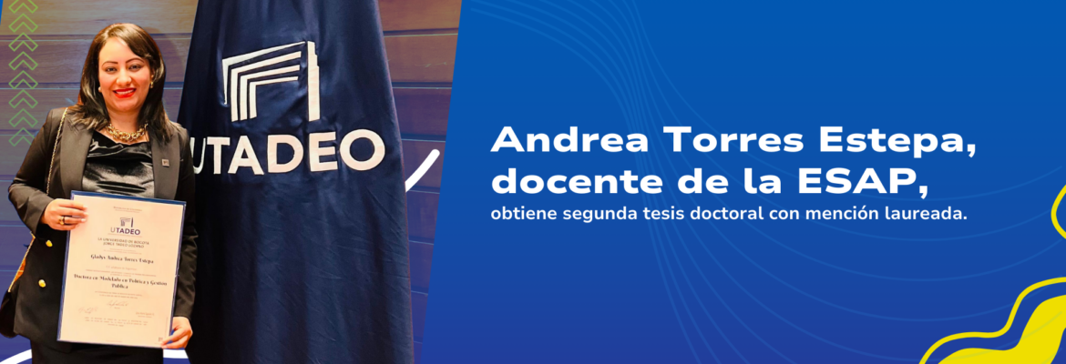La Escuela Superior de Administración Pública (ESAP) felicita y celebra el importante logro académico de la profesora de carrera, Andrea Torres Estepa, quien ha obtenido su segunda tesis doctoral en Modelado en Política y Gestión Pública, por la Universidad Jorge Tadeo Lozano.
