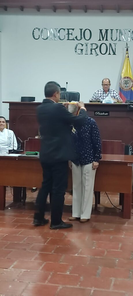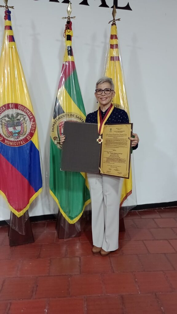 Bucaramanga, 11 de diciembre de 2023. Comunicaciones ESAP. La docente de la Territorial Santander, María Lucía Sierra Sierra, recibió esta semana la condecoración “Orden Francisco Mantilla de los Ríos”, otorgada por el Concejo Municipal de Girón – Santander, en la que se destacan sus notables aportes desde el ejercicio de su profesión como Socióloga y sus estudios de especialización en Derechos Humanos, Administración de Informática Educativa, y Gerencia Pública; así como la maestría en Gestión en Tecnología Educativa.