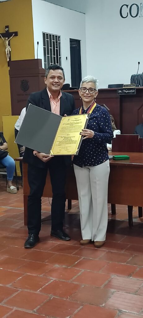 La corporación destacó los aportes de la docente en la investigación educativa, con un enfoque en el fortalecimiento del desarrollo intelectual de la humanidad, con alto sentido social y humanista, lo que la hizo merecedora de este reconocimiento por parte del mencionado Concejo Municipal.