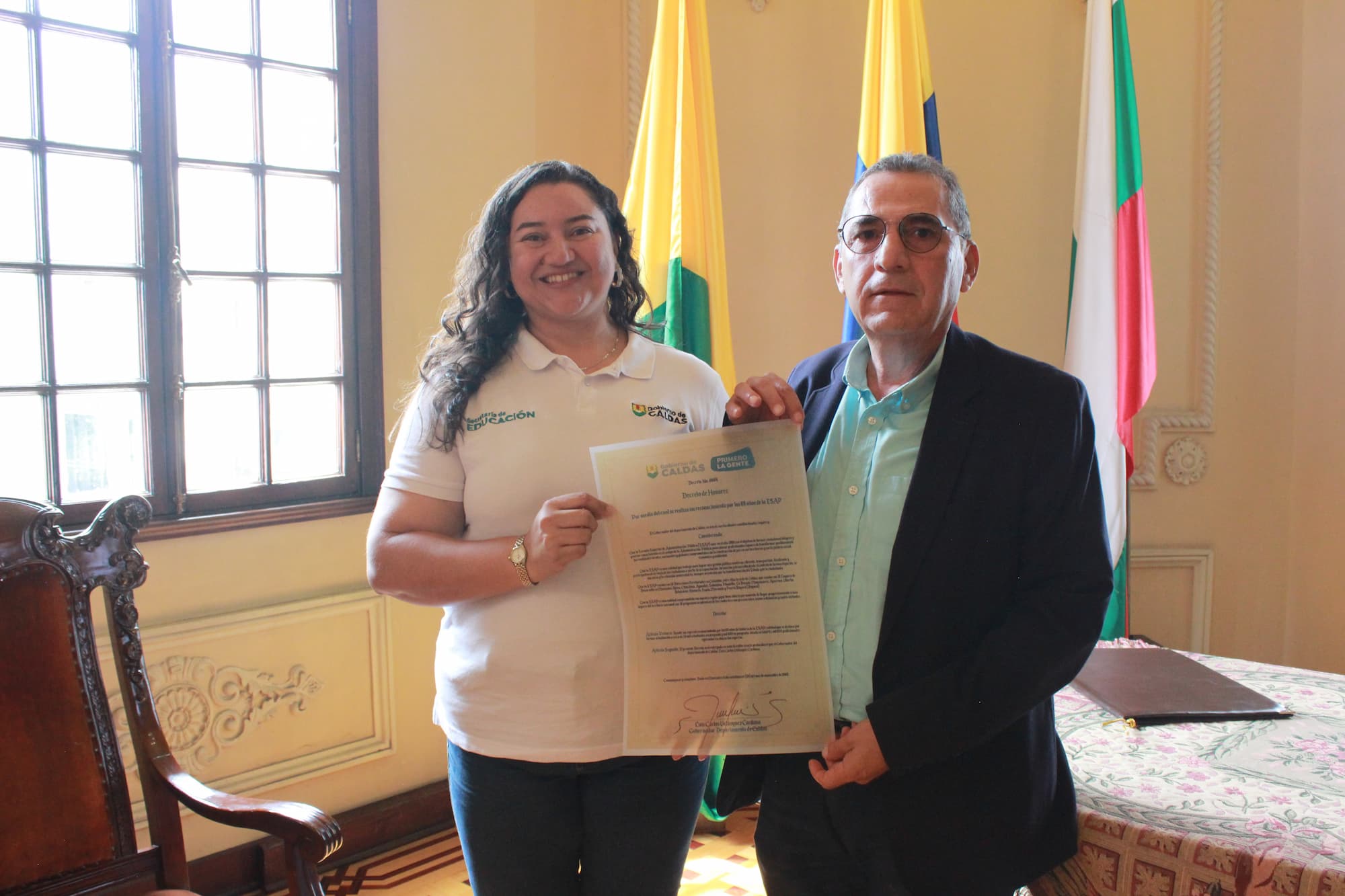La Gobernación de Caldas, a través de su secretaria de Educación, Diana María Cardona, entregó nota de estilo, la cual fue recibida por Jhon Jairo Castaño, director encargado (e) de la ESAP Territorial Caldas.
