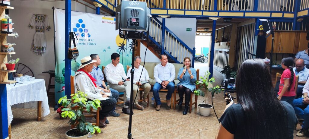 Marsella, 16 de diciembre de 2023. COMUNICACIONES ESAP. La Escuela Superior de Administración Pública – ESAP territorial Quindío-Risaralda, realizó el lanzamiento de su nuevo programa audiovisual CAFESAP, un diálogo abierto alrededor de una taza de café, para tratar diversos temas del saber administrativo público con enfoque territorial y con la participación de expertos y comunidad académica.