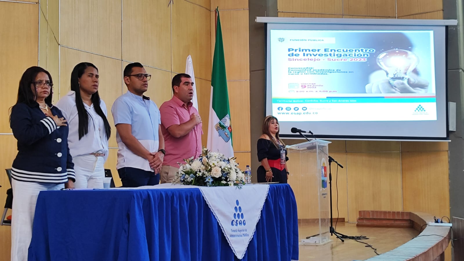 Sincelejo – Sucre, 09 de junio de 2023. (Comunicaciones ESAP – Territorial Bolívar, Córdoba, Sucre, San Andrés Islas) Se llevó a cabo el primer encuentro de investigación en el auditorio de la Gobernación de Sucre en Sincelejo, un espacio que contó con la participación de destacadas instituciones académicas y representantes del sector productivo en el que se socializaron proyectos de investigación en curso y finalizados.
