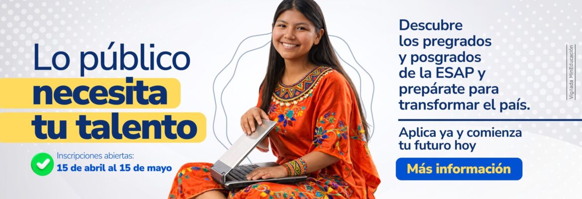 Las inscripciones estarán abiertas durante un mes, es decir, hasta el 15 de mayo, periodo en el que los aspirantes podrán postularse a programas de pregrado y posgrado, diseñados para responder a los desafíos actuales de la gestión pública en Colombia: «Cuando entré a la ESAP, desde el inicio, mi conexión con la formación fue muy fuerte ―relata Agudelo López―, sobre todo con esas materias que me hicieron comprender el Estado desde sus distintas dimensiones y, a la vez, entender que ese era el campo en el que quería realizarme».