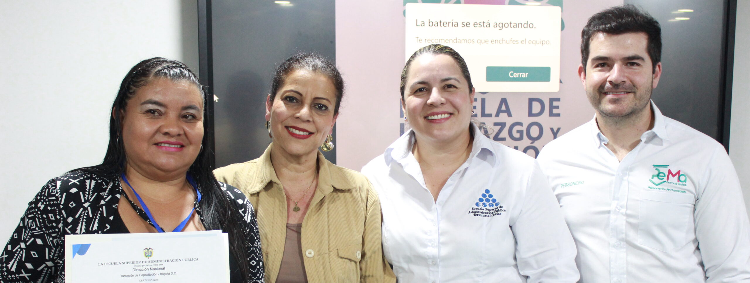 Desde julio pasado, los representantes de las juntas de acción local, las juntas administradoras locales y líderes sociales de la capital caldense recibieron formación en normatividad, participación ciudadana y liderazgo, campos del conocimiento en los que la ESAP Caldas, con sus docentes, aportó su experticia pedagógica. «Este diplomado se enfocó en fortalecer los conocimientos y las habilidades de los ediles en el ejercicio de su gestión ante sus comunidades», precisó Cristina Otálvaro, directora territorial de la ESAP Caldas, quien, además, celebró la unión interinstitucional que permite a Manizales tener líderes más preparados para su ejercicio de veeduría ciudadana: «Esperamos que la Escuela de Liderazgo continúe con su trabajo para así cumplirle a la ciudadanía». En ello coincidió Juan Pablo Osorio, personero de Manizales, quien también destacó el alto sentido de responsabilidad social de las cinco instituciones, así como la apuesta por la formación ciudadana, la construcción democrática y la promoción de los derechos humanos.