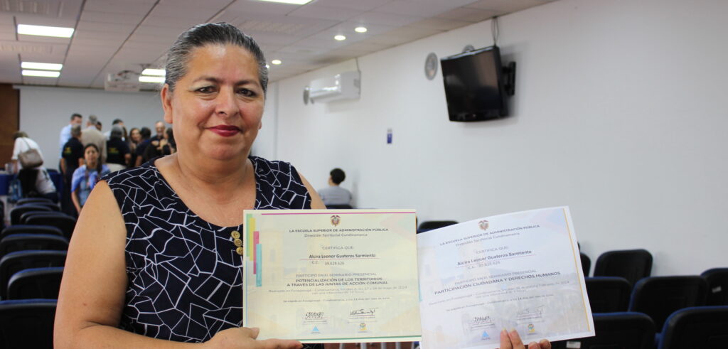Fusagasugá, 26 de junio de 2024 (Comunicaciones ESAP). En alianza con la alcaldía de Fusagasugá, la ESAP Territorial Cundinamarca hizo entrega de 141 certificados a líderes y lideresas de las Juntas de Acción Comunal y ciudadanía en general que participaron de manera activa en 3 seminarios presenciales: “Potencialización de los territorios a través de las JAC”, “Participación ciudadana y derechos humanos”, y “Derechos y deberes constitucionales, libertades y garantías de protección”.