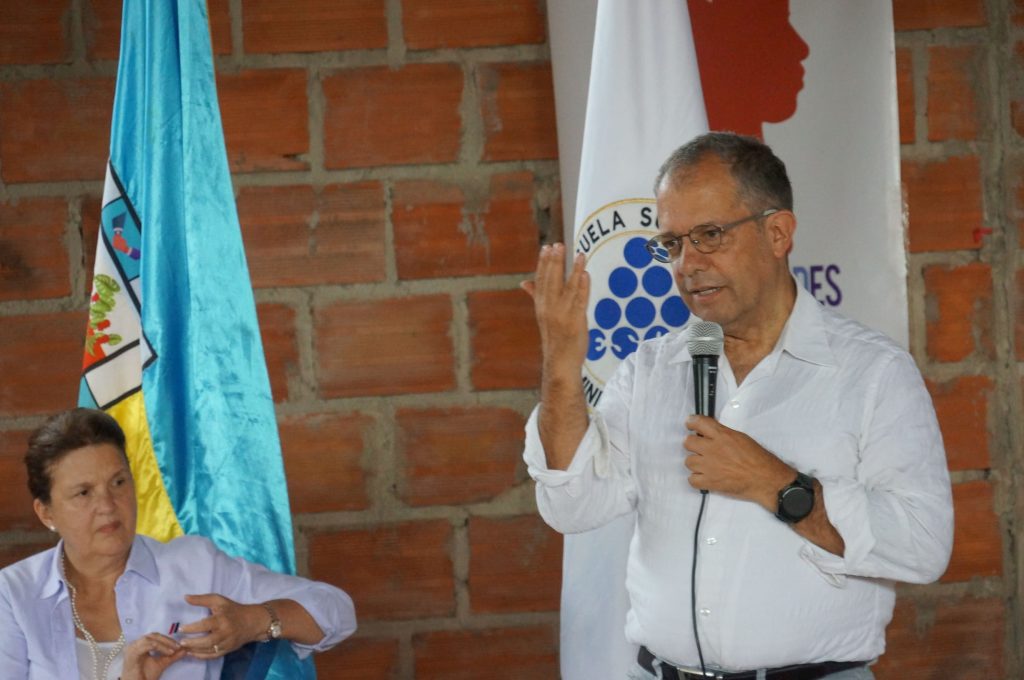Manaure, 17 de agosto de 2023. Comunicaciones ESAP. El director nacional de la Escuela Superior de Administración Pública -ESAP-, profesor Jorge Iván Bula Escobar, compartió en la vereda de Tierra Grata, jurisdicción del municipio de Manaure Balcón del Cesar, con miembros del gobierno municipal y firmantes del Acuerdo Final de Paz, antiguos combatientes de las FARC.