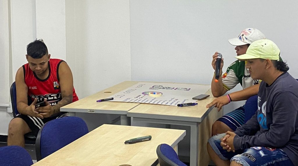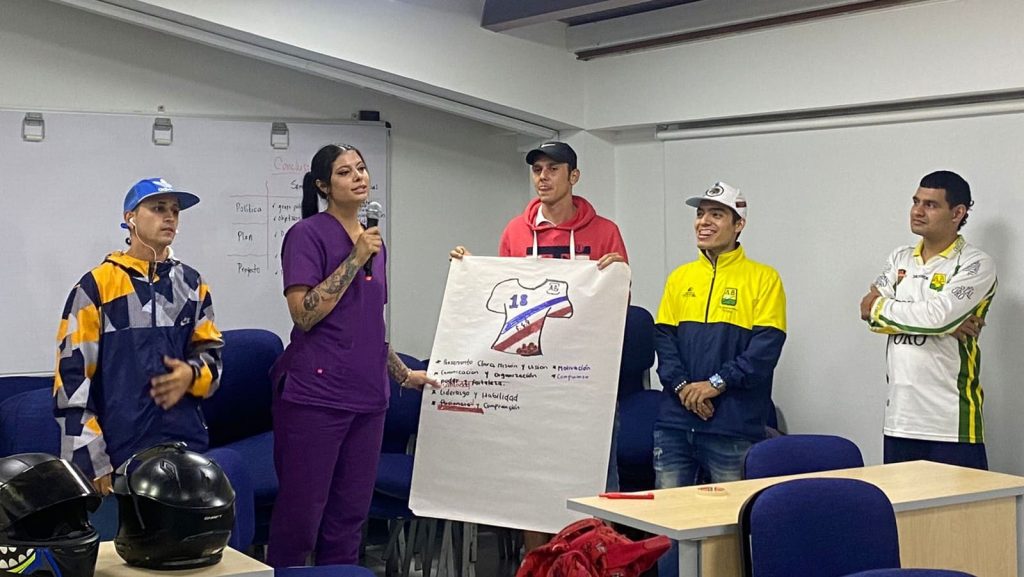 Bucaramanga, 22 de agosto de 2023. Comunicaciones ESAP. Hinchas del Atlético Bucaramanga adscritos a la denominada barra leoparda, adelantan por estos días la capacitación en Habilidades Blandas para el Estímulo del Liderazgo Juvenil Transformador, ofrecido por la Escuela Superior de Administración Pública Territorial Santander.