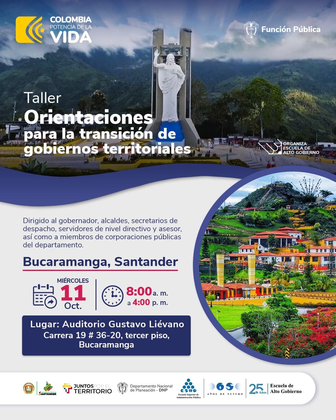 El taller se llevará a cabo el próximo miércoles 11 de octubre, de 8:00 a.m. a 4:00 p.m. en las instalaciones de la Gobernación de Santander.