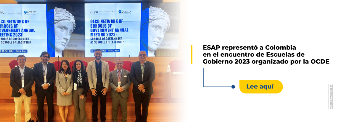 Bogotá, 31 de mayo de 2023. Colombia participó en el encuentro anual de la Red de Escuelas de Gobierno de la Organización para la Cooperación y el Desarrollo Económicos (OCDE), cuya versión más reciente se llevó a cabo el pasado 22 y 23 de mayo en Italia. La cuota nacional estuvo por cuenta del director nacional de la Escuela Superior de Administración Pública – ESAP, profesor Jorge Iván Bula Escobar, quien intervino con la ponencia sobre formación de empleados públicos “The ESAP as a cornerstone of the training of public employees”.