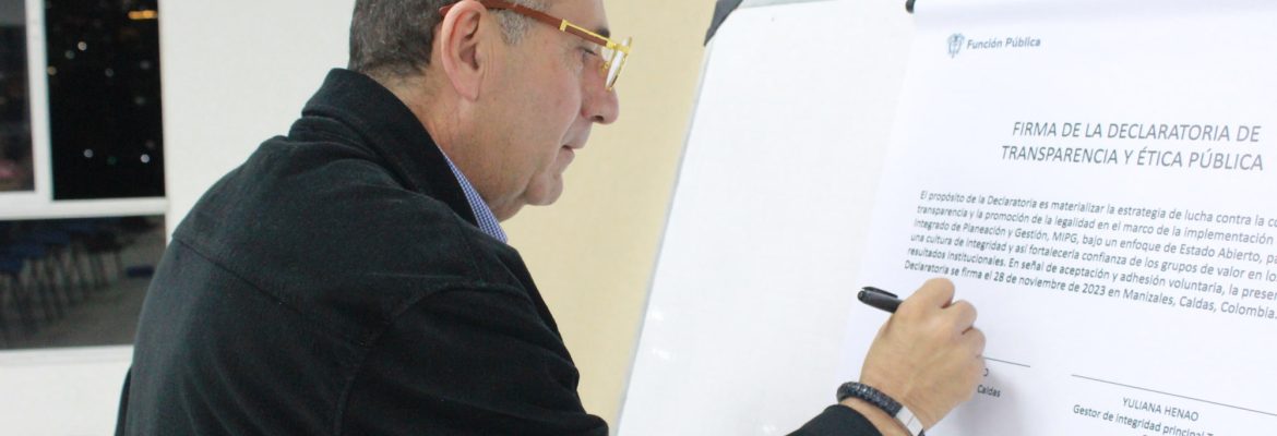 Durante la Rendición de Cuentas también se hizo la firma de la Declaratoria de Transparencia y Ética Pública, que tuvo como testigo a Carlos Alberto Ramírez, gerente de la Contraloría General de la República gerencia colegiada Caldas: “Muy complacido de participar en este evento. Para nosotros es muy placentero que las instituciones puedan realizar una Rendición de Cuentas, en la cual la comunidad pueda conocer en qué se invierten los recursos, qué acciones se están implementando y cómo se está impactando a la comunidad en los diferentes sectores. Importante que la comunidad participe, porque son ellos quienes convalidan los ejercicios y ayudan a vigilar que los recursos se inviertan de la mejor manera”, aseguró el gerente.