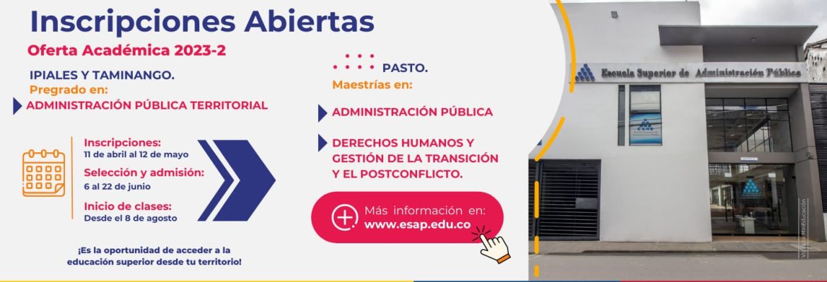 Inicio » Inicio » Nariño noticias » ESAP Territorial Nariño – Alto putumayo, abre inscripciones para los programas en pregrado y maestrías 2023-2