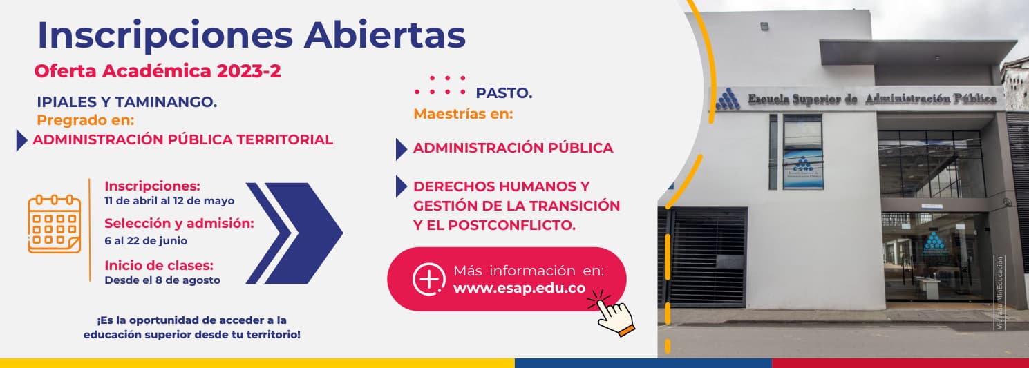 Inicio » Inicio » Nariño noticias » ESAP Territorial Nariño – Alto putumayo, abre inscripciones para los programas en pregrado y maestrías 2023-2