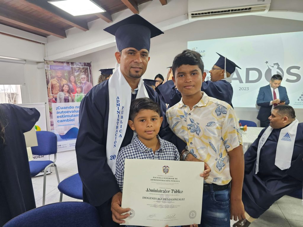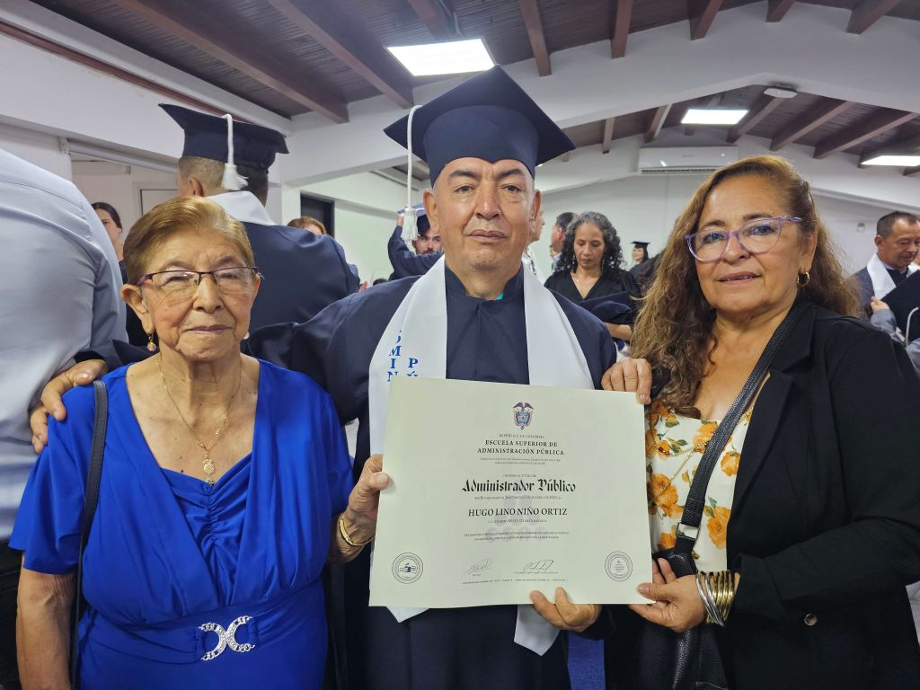 De igual forma, los graduados expresaron su felicidad por cumplir su sueño de ser profesionales. Así lo dio a conocer en el acto protocolario el egresado Hugo Lino Niño: “tengo 56 años y la ESAP me abrió las puertas para cumplir ese deseo de ser profesión; hoy, 5 años después y tras varios inconvenientes, recibo mi título como administrador público, estoy feliz y digo ¡lo logré!”. Así mismo, Julissa Chacón se dirigió a sus compañeros invitándolos a ser profesionales responsables porque son la cara de la administración pública: “hemos recibido nuestro título de administradores públicos y especialista, debemos ser aún más conscientes de lo que ello trae consigo, de la dignidad, integridad y probidad de nuestros deberes y de la función social que esta trae impresa; es el ejercicio de actividades que comprenden el desarrollo de las funciones del Estado, pues somos los llamados a administrar los recursos públicos, a impulsar el fortalecimiento de las instituciones y el desarrollo de las comunidades y a aportar al desarrollo de una Colombia mejor”, así expresó.