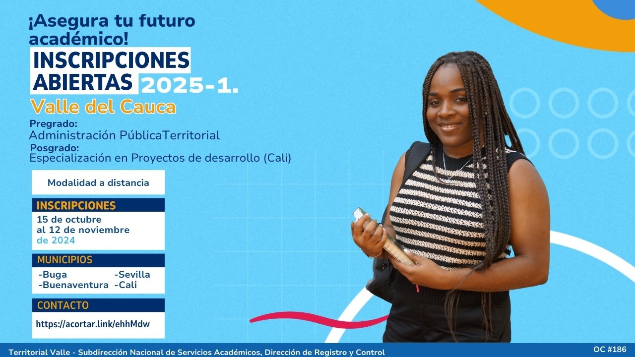 Con el propósito de continuar con esta labor de cualificación profesional, las inscripciones están abiertas hasta el próximo 12 de noviembre para el periodo académico 2025-1. La oferta académica de pregrado en Administración Pública Territorial se encuentra disponible en las sedes de Buga, Sevilla, Buenaventura y Santiago de Cali. En cuanto a los programas de posgrado, se ofrece la Especialización en Proyectos de Desarrollo en la capital vallecaucana.