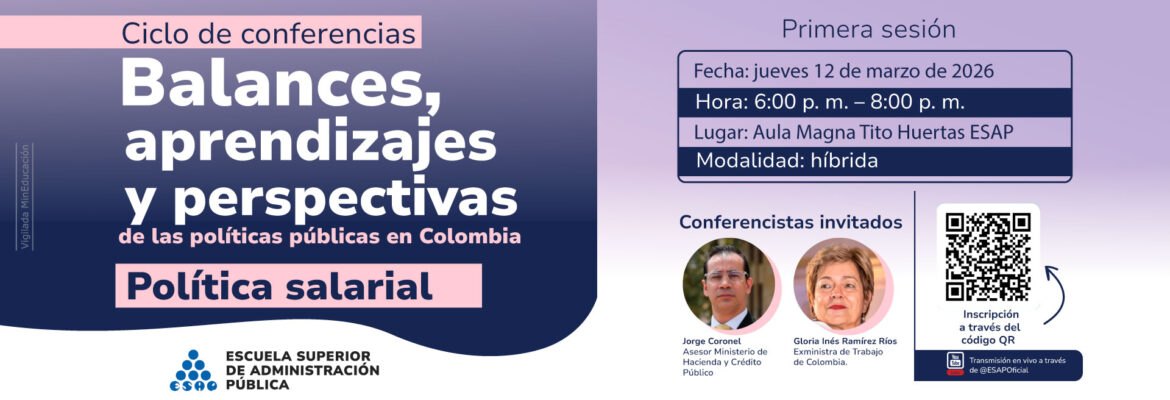 Las sesiones del ciclo serán quincenales y en la primera, el próximo jueves 12 de marzo de 2026, de 6:00 p. m. a 8:00 p. m., en el auditorio Tito Huertas de la ESAP, participarán Gloria Inés Ramírez, exministra de Trabajo, y Jorge Coronel, asesor del Ministerio de Hacienda, quienes compartirán sus pertinentes consideraciones sobre la política laboral y salarial en Colombia.