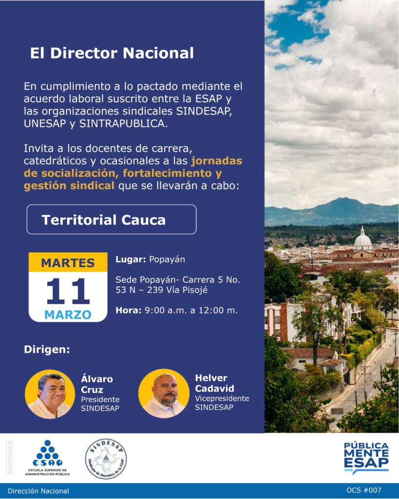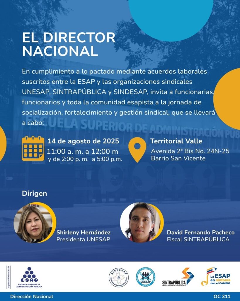 | 11 | Jornada de socialización y fortalecimiento a la gestión sindical UNESAP y SINTRAPÚBLICA | Cali | 2025/08/14 | ||||