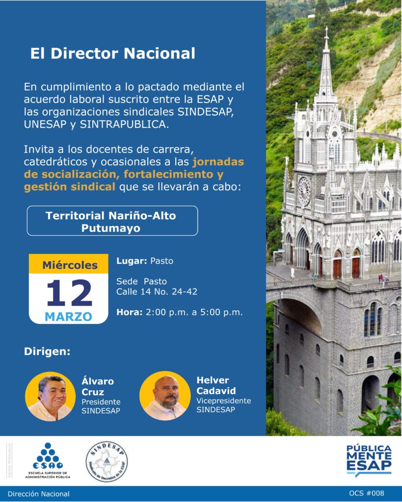 | 2 | Jornada de socialización y fortalecimiento a la gestión sindical SINDESAP | Pasto | 2025/03/12 | ||||
