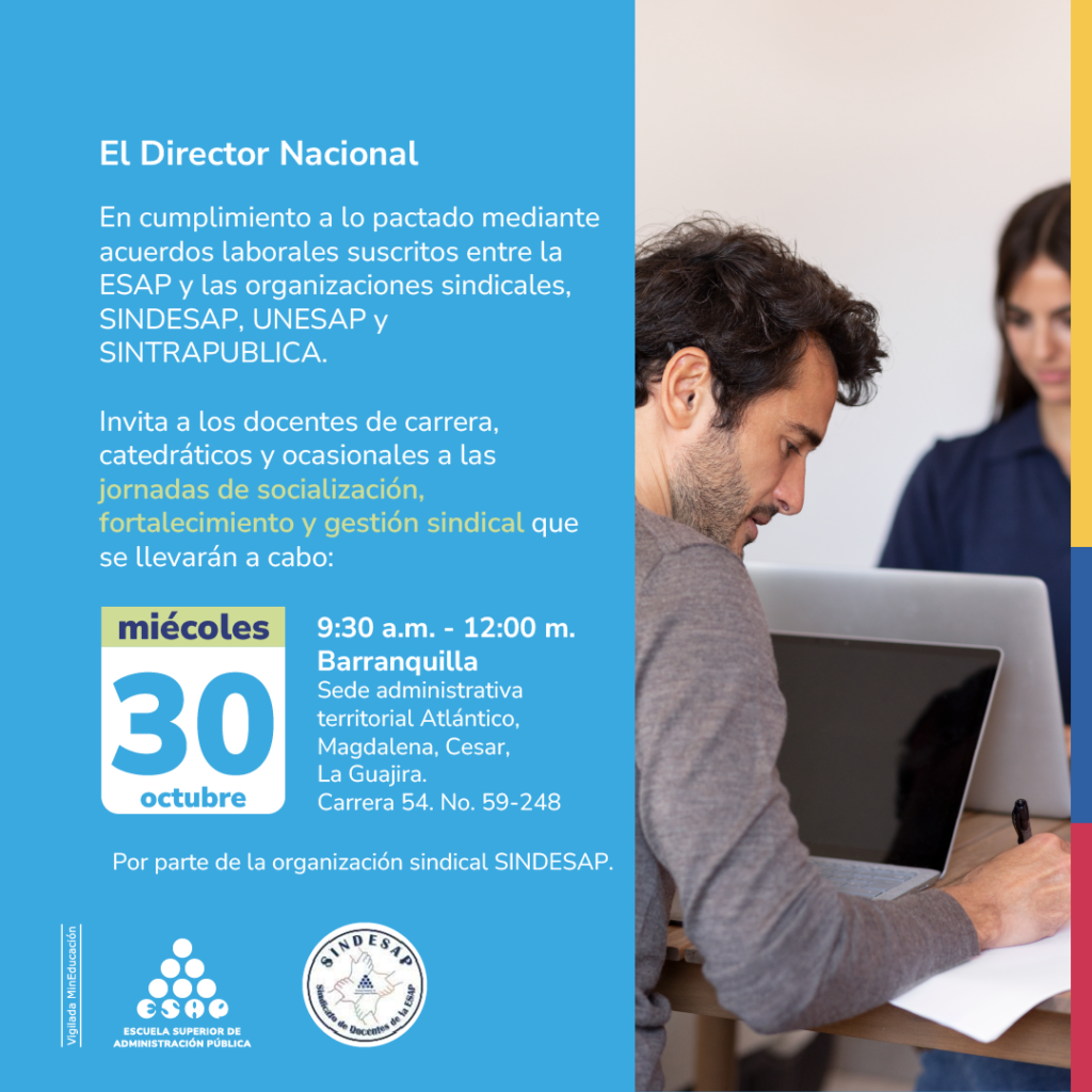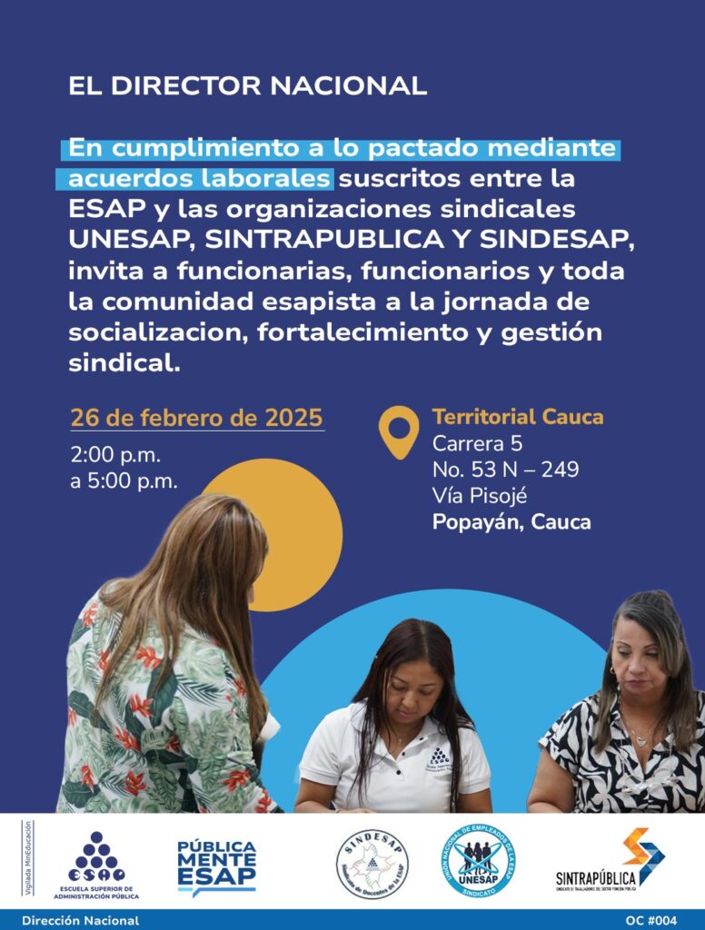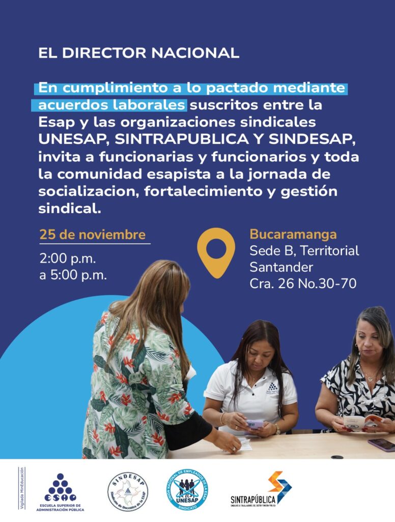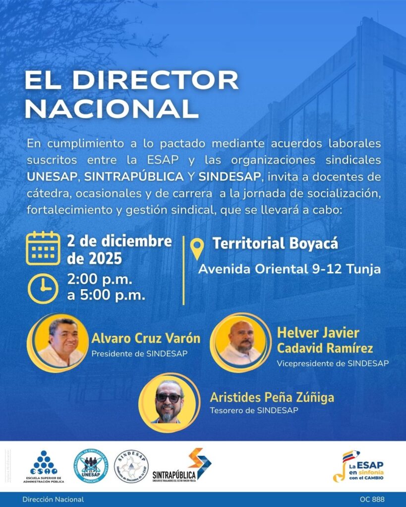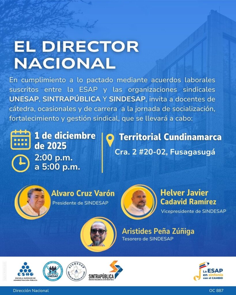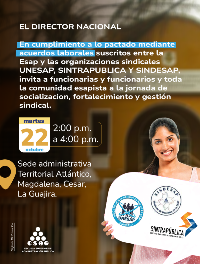 Trabajadores de la ESAP tendrán mejores condiciones laborales gracias al acuerdo alcanzado con las organizaciones sindicales