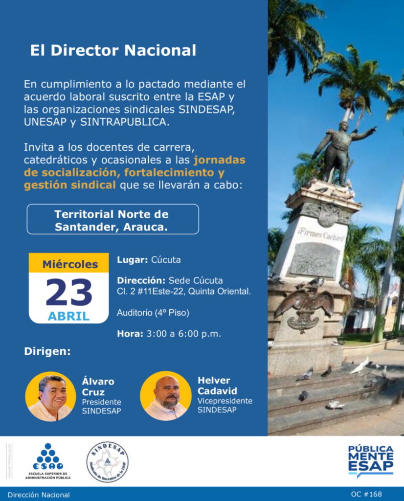 | 7 | Jornada de socialización y fortalecimiento a la gestión sindical SINDESAP | Cúcuta | 2025/04/23 | ||||