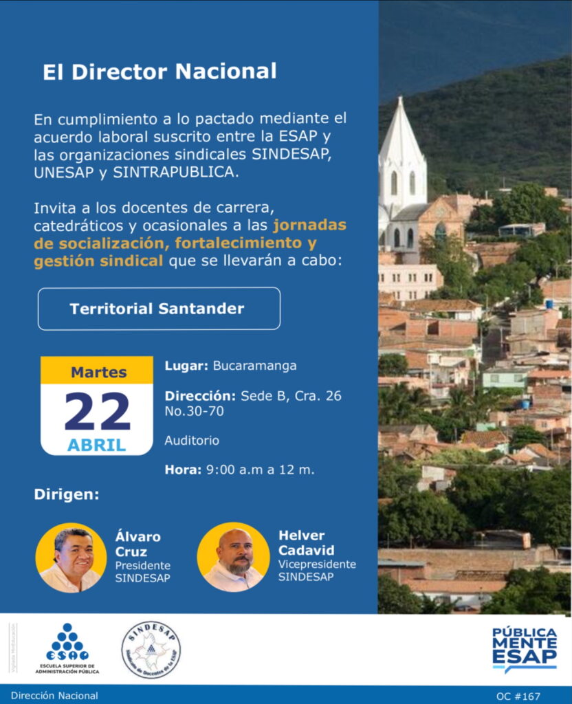 | 6 | Jornada de socialización y fortalecimiento a la gestión sindical SINDESAP | Bucaramanga | 2025/04/22 | ||||