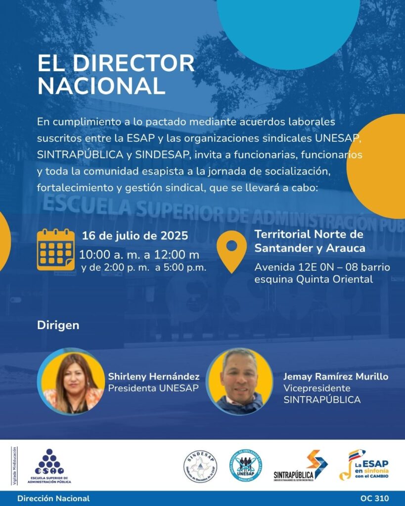 | 10 | Jornada de socialización y fortalecimiento a la gestión sindical UNESAP y SINTRAPÚBLICA | Cúcuta | 2025/07/16 | ||||