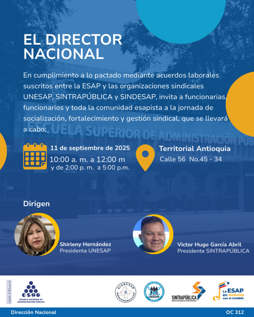 | 12 | Jornada de socialización y fortalecimiento a la gestión sindical UNESAP y SINTRAPÚBLICA | Medellín | 2025/09/11 | ||||