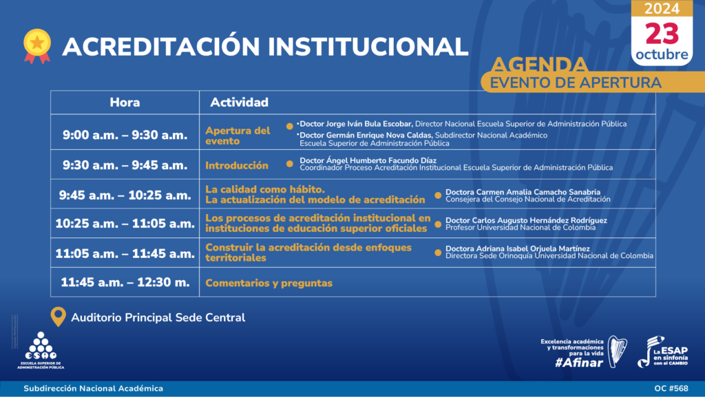 La acreditación es el reconocimiento de la alta calidad que otorga el Ministerio de Educación Nacional a las instituciones que cumplen con los más altos criterios de calidad y que realizan sus propósitos y objetivos, teniendo en cuenta la naturaleza jurídica, identidad, misión, tipología, niveles de formación y modalidades.