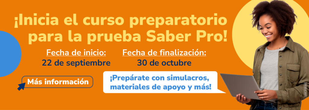 Participa en el Curso Preparatorio Saber Pro para afianzar tus habilidades en las competencias genéricas y competencias especificas evaluadas en el examen, allí encontrarás simulacros de evaluación para medir qué tan preparado te encuentras para aplicar a la prueba real.
