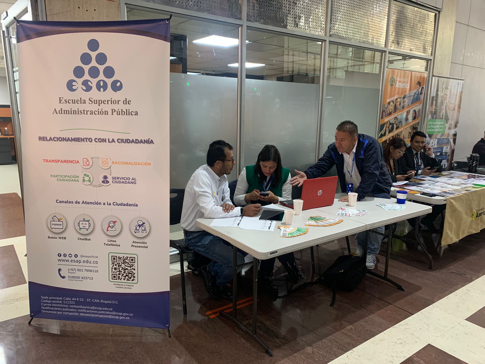 La Ruta de la Excelencia pasó por diferentes stand de las áreas de la ESAP, donde funcionarios expusieron a los visitantes la gestión y proyección de la Escuela, pasando por espacio especial “Servidores Públicos Constructores de Paz” donde se dio especial importancia al momento histórico que vive Colombia.