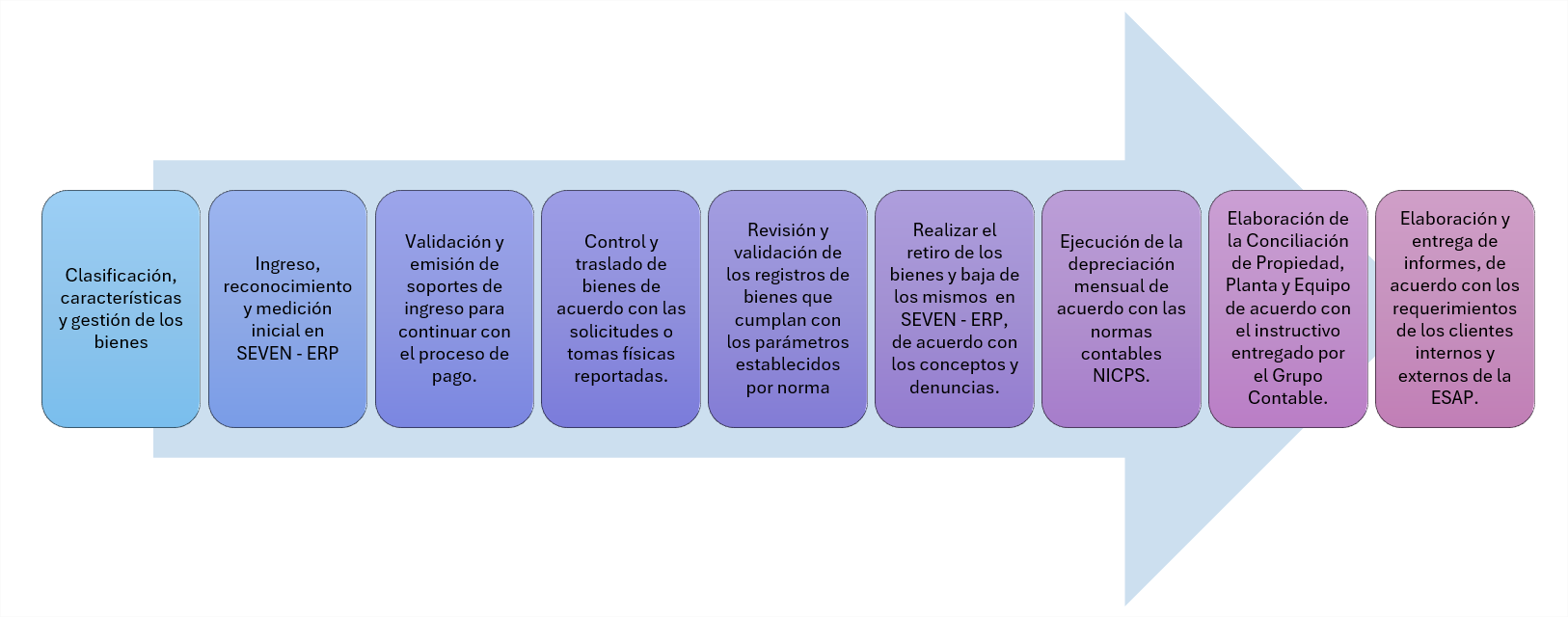 Así mismo, apoyar la definición de los lineamientos para el manejo y administración de los bienes de la ESAP mediante la clasificación, y gestión de los bienes con el propósito de suministrar información financiera uniforme, de fácil acceso y que permita controlar los recursos de la entidad.