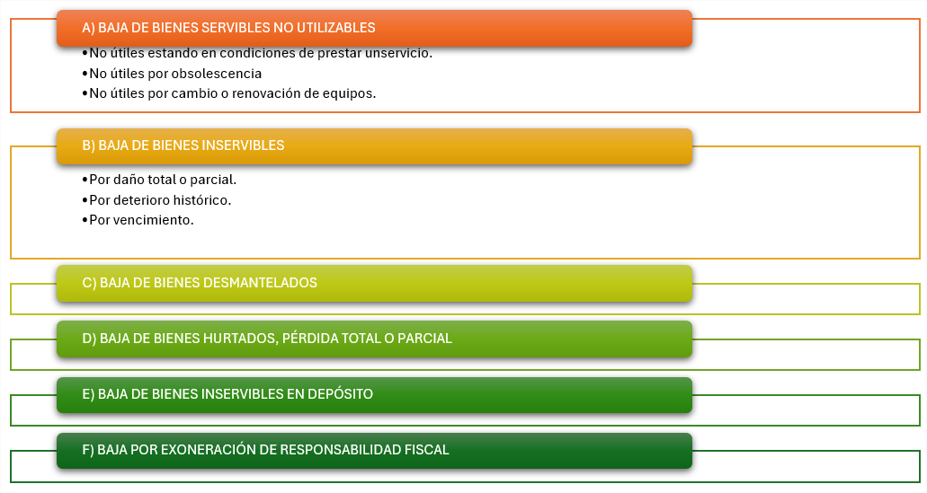 Gestionar las actividades necesarias con el objetivo de asegurar que los bienes que ya no son útiles o que han cumplido su ciclo de vida útil sean correctamente desvinculados del inventario y patrimonio de la ESAP. La baja de los bienes se lleva a cabo mediante un procedimiento detallado que incluye la verificación de su estado físico, su registro contable y la justificación de su retiro.