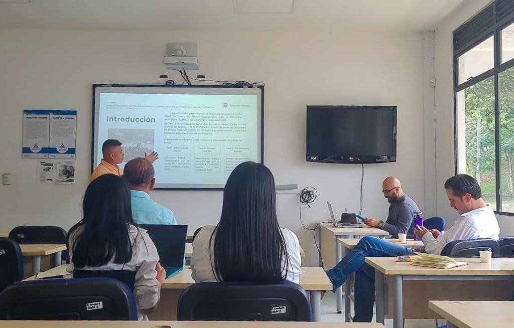 Popayán, 13 de junio de 2023. Comunicaciones ESAP – Territorial Cauca. A través de un espacio académico que respondió al espíritu pedagógico de la Escuela Superior de Administración Pública- ESAP, 24 estudiantes de la Territorial Cauca socializaron sus opciones de grado para el periodo 2023-1. Al evento realizado el pasado 9 de junio asistieron, además de los estudiantes, el área de apoyo académico, el director encargado, la coordinadora Académica, los profesores de tiempo completo de la Territorial y docentes invitados de instituciones como la FUP, el Colegio Mayor del Cauca y del Centro de Investigación CIRIEC Colombia de Bogotá.