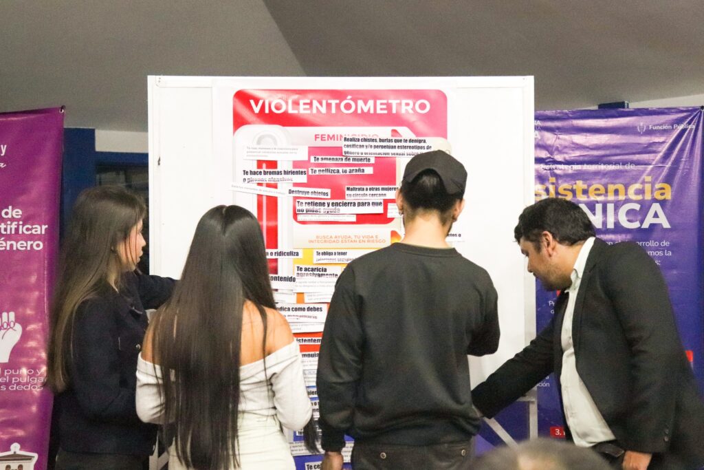 Carolina Jiménez Jaramillo, participante, agregó que además de reflexionar, la actividad incluyó un componente visual y práctico que motivó el debate entre los estudiantes: “Tuvimos un pequeño cortometraje con el que mostramos las herramientas que podemos utilizar para medir la violencia contra la mujer. También realizamos un debate con nuestros compañeros, y la idea es seguir realizando estos eventos para informar a más estudiantes y erradicar este flagelo de nuestra sociedad”.