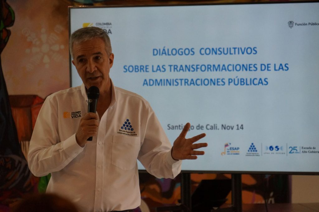 Santiago de Cali, 17 de noviembre de 2023. Comunicaciones ESAP. Los servidores públicos del nivel directivo y asesor del Valle del Cauca y Cauca atendieron la convocatoria para adelantar el taller Diálogos Consultivos sobre transformaciones de las administraciones públicas, liderado por el Departamento Administrativo de la Función Pública, DAFP, y la Escuela de Alto Gobierno de la ESAP.